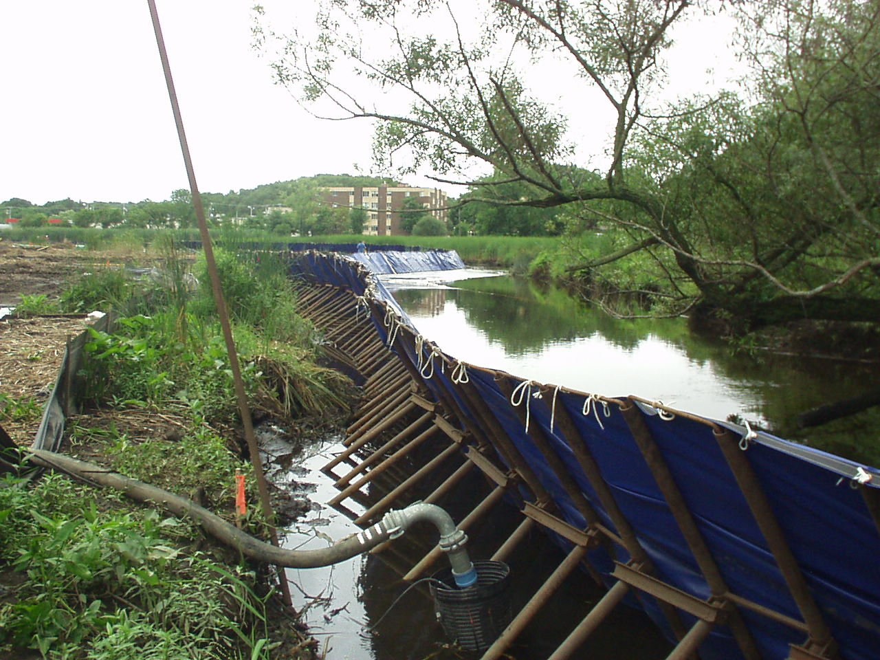 HandyDam is a highly flexible, cost effective, portable cofferdam which can handle water up to 12 feet. HandyDam can be used in all types of environmental cleanup, boat ramps, bridge repair, bank restoration, pipe line crossings and water diversion. HandyDam is an alternative to costly driven sheet piles. HandyDam meets all Department of Natural Resources and Wetland standards